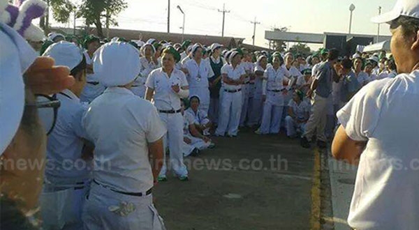 หนุ่มสาวโรงงานไทยแอโรว์ ประท้วง ขอโบนัส 7 เท่า