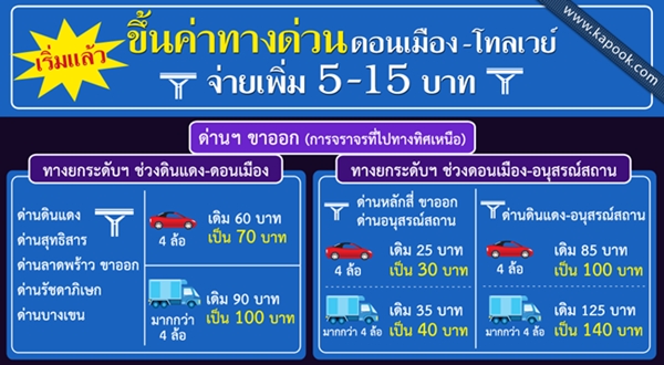 ขึ้นแล้ววันนี้ ! ทางด่วนดอนเมืองโทลเวย์ อัตราใหม่
