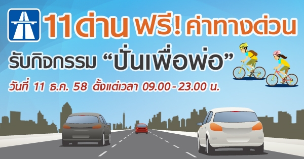 11 ธ.ค. ฟรีค่าทางด่วน 11 ด่าน รับกิจกรรม ปั่นเพื่อพ่อ