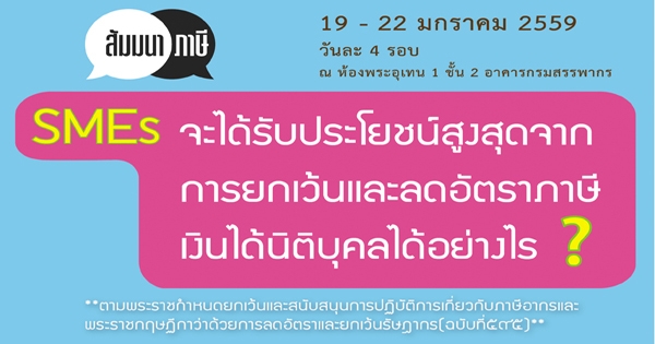 สัมมนาฟรี ! เจาะลึกเรื่องภาษีเงินได้นิติบุคคลกับธุรกิจ SMEs 19-22 มกราคม 2559