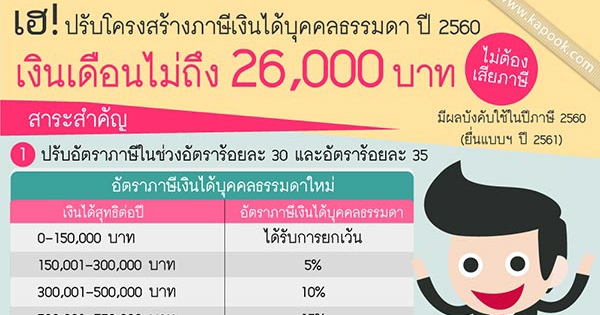 ปรับโครงสร้างภาษีเงินได้บุคคลธรรมดา ปี 2560 ค่าลดหย่อนเพียบ เงินเดือน 26,000 ถึงเสียภาษี