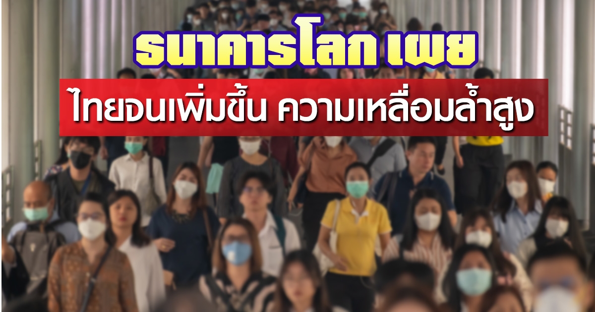 ธนาคารโลก เผยคนไทยยากจนเพิ่มขึ้น ยอดพุ่ง 6.7 ล้านคน พบเหลื่อมล้ำสูง