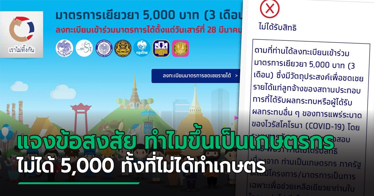 แจงข้อสงสัย ทำไมขึ้นเป็นเกษตรกร ไม่ได้สิทธิ์ 5,000 เราไม่ทิ้งกัน ทั้งที่ไม่ได้ทำเกษตร