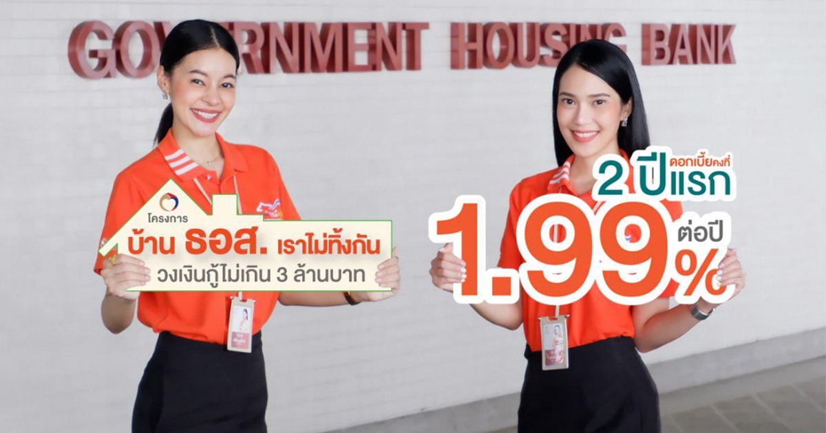 สินเชื่อโครงการบ้าน ธอส. เราไม่ทิ้งกัน ดอกเบี้ย 1.99% ต่อปี คงที่ 2 ปีแรก