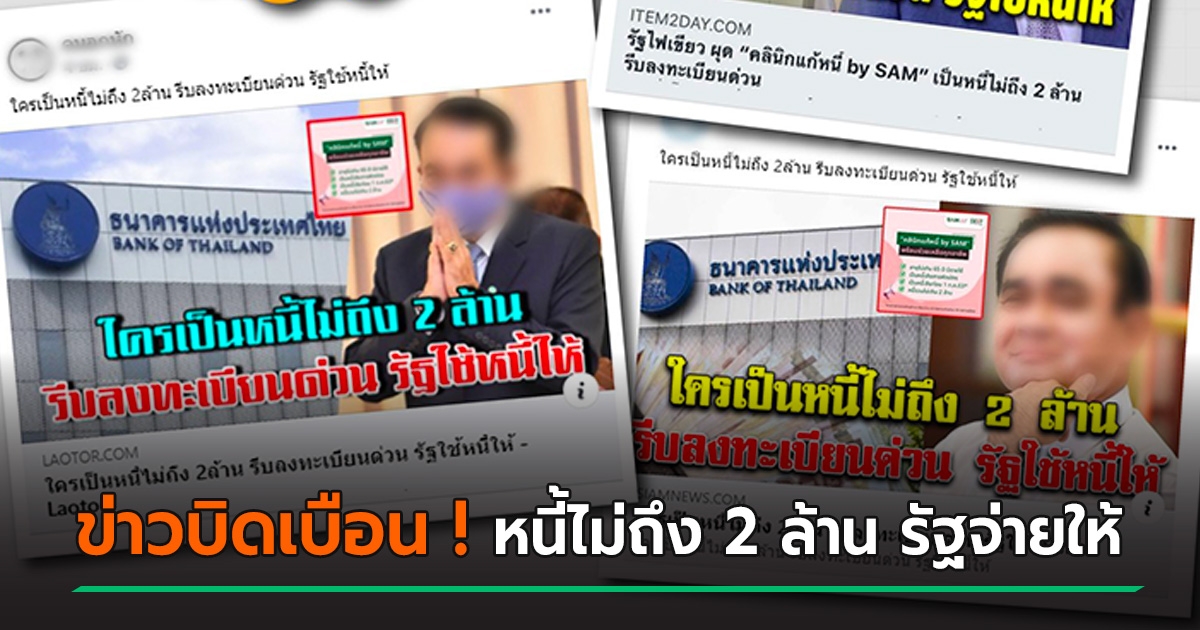 ข่าวบิดเบือน ! หนี้ไม่ถึง 2 ล้าน รัฐจ่ายให้ คลินิกแก้หนี้ ชี้แจงความจริงเป็นแบบนี้
