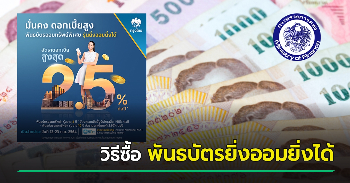 พันธบัตรยิ่งออมยิ่งได้ 4 ปี และ 10 ปี ดอกเบี้ยสูง เริ่มวันแรก 12 ก.ค. ซื้อยังไง เช็กเลย
