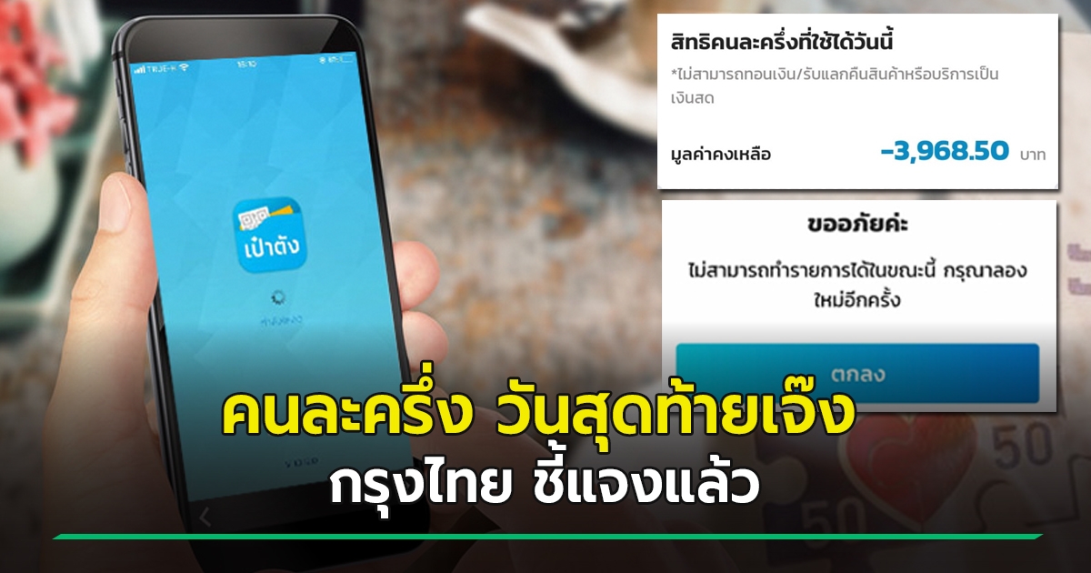 วุ่น ! คนละครึ่ง วันสุดท้าย 31 ธ.ค. เจอปัญหาแต่เช้า เป๋าตังล่ม เงินติดลบ - กรุงไทยชี้แจงแล้ว