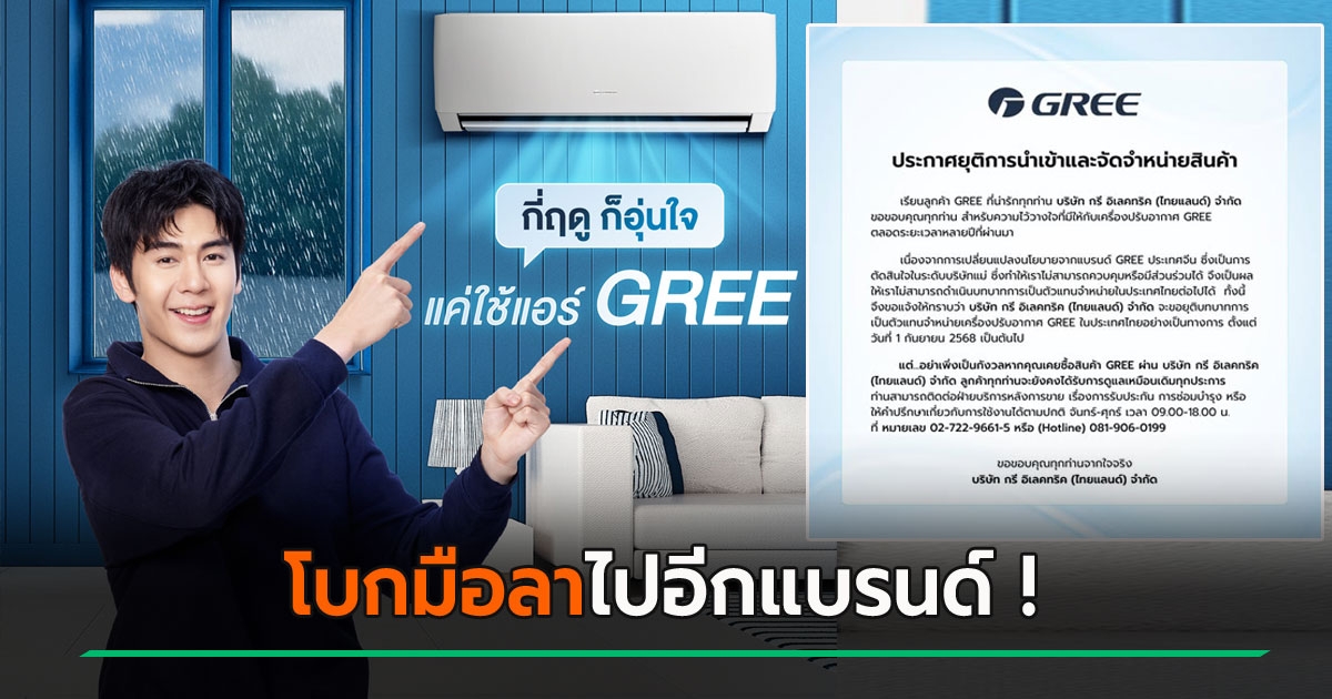 ปิดตำนาน 16 ปี ! แอร์ GREE ยุติจำหน่ายในไทยอย่างเป็นทางการ 1 ก.ย. นี้