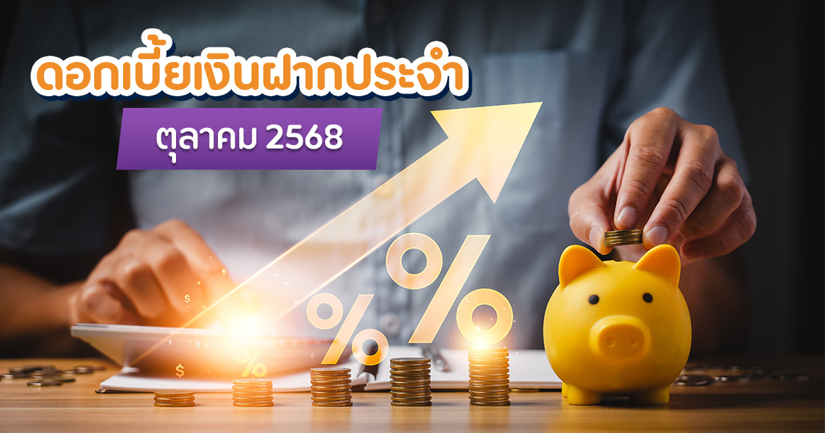 ดอกเบี้ยเงินฝาก เดือนตุลาคม 2568 ทุกธนาคาร แต่ละแบงก์ให้อัตราดอกเบี้ยเท่าไรบ้าง มาเช็กรายละเอียด พร้อมสรุป 3 อันดับเงินฝากประจำ 3 เดือน, 6 เดือน และ 12 เดือน ช่วงนี้อัตราดอกเบี้ยเงินฝากเริ่มปรับลดลงตามทิศทางการลดอัตราดอกเบี้ยนโยบาย ทำให้คนที่สนใจออมเงิน อยากรู้ว่า ธนาคารต่าง ๆ ให้ดอกเบี้ยเงินฝากเท่าไรบ้าง โดยเฉพาะเงินฝากประจำ ที่มักให้ดอกเบี้ยสูงกว่าเงินฝากออมทรัพย์ทั่วไป วันนี้เราเลยรวบรวมข้อมูลอัตราดอกเบี้ยเงินฝากประจำ (สำหรับบุคคลธรรมดา) เดือนตุลาคม 2568 ของแต่ละธนาคารมาไว้ให้เปรียบเทียบกันง่าย ๆ พร้อมสรุป 3 อันดับเงินฝากประจำที่ให้ดอกเบี้ยสูงที่สุด ให้เช็กกันในตอนท้ายบทความด้วย (ข้อมูล ณ วันที่ 9 ตุลาคม 2568) อัตราดอกเบี้ยเงินฝากมีผลบังคับใช้ตั้งแต่วันที่ 6 ตุลาคม 2568 เป็นต้นไป ดังนี้ ประจำ 3 เดือน 0.80% ต่อปี ประจำ 6 เดือน 0.85% ต่อปี ประจำ 12 เดือน 1.10% ต่อปี ประจำ 24 เดือน 1.10% ต่อปี ประจำ 36 เดือน 1.10% ต่อปี Krungthai Zero Tax Max 24 เดือน 1.85% ต่อปี Krungthai Zero Tax Max 36 เดือน 2.00% ต่อปี Krungthai Zero Tax Max 48 เดือน 2.00% ต่อปี ข้อมูลเพิ่มเติม : ธนาคารกรุงไทย อัตราดอกเบี้ยเงินฝากมีผลบังคับใช้ตั้งแต่วันที่ 22 กันยายน 2568 เป็นต้นไป ดังนี้ ประจำ 3 เดือน 0.80% ต่อปี ประจำ 6 เดือน 0.85% ต่อปี ประจำ 12 เดือน 1.10% ต่อปี ประจำ 24 เดือน 1.15% ต่อปี ประจำ 36 เดือน 1.20% ต่อปี ประจำรายเดือนยกเว้นภาษี 2.05% ต่อปี ข้อมูลเพิ่มเติม : ธนาคารออมสิน อัตราดอกเบี้ยเงินฝากที่ใช้ตั้งแต่วันที่ 1 ตุลาคม 2568 เป็นต้นไป มีดังนี้ ประจำ 3 เดือน 1.05% ต่อปี ประจำ 6 เดือน 1.10% ต่อปี ประจำ 12 เดือน 1.70% ต่อปี ประจำ 24 เดือน 1.80% ต่อปี ประจำ 36 เดือน 1.85% ต่อปี ประจำ 48 เดือน 1.85% ต่อปี ประจำ 60 เดือน 1.85% ต่อปี ประจำปลอดภาษี 24 เดือน 2.65% ต่อปี เงินฝากทองชมพูนุท (7 เดือน) 1.40% ต่อปี เงินฝากทองเนื้อเก้า (2 ปี) 1.50% ต่อปี ข้อมูลเพิ่มเติม : ธ.ก.ส. อัตราดอกเบี้ยเงินฝากที่ใช้ตั้งแต่วันที่ 26 กันยายน 2568 เป็นต้นไป ดังนี้ ประจำ 3 เดือน 0.80% ต่อปี ประจำ 6 เดือน 0.85% ต่อปี ประจำ 12 เดือน 1.10% ต่อปี ประจำ 24 เดือน 1.15% ต่อปี ประจำ 36 เดือน 1.20% ต่อปี ประจำ 60 เดือน 1.30% ต่อปี ข้อมูลเพิ่มเติม : ธนาคารอาคารสงเคราะห์ อัตราดอกเบี้ยเงินฝากมีผลบังคับใช้ตั้งแต่วันที่ 7 ตุลาคม 2568 เป็นต้นไป ดังนี้ ประจำ 3 เดือน 0.80% ต่อปี ประจำ 6 เดือน 0.90% ต่อปี ประจำ 12 เดือน 1.05% ต่อปี ประจำ 24 เดือน 1.00% ต่อปี ประจำ 36 เดือน 1.00% ต่อปี ประจำปลอดภาษี 24 เดือน 1.80% ต่อปี ประจำปลอดภาษี 36 เดือน 1.50% ต่อปี ประจำปลอดภาษี Happy Tax Free 24 เดือน 2.00% ต่อปี (Kept by Krungsri) ประจำปลอดภาษี Happy Tax Free 36 เดือน 1.70% ต่อปี (Kept by Krungsri) ข้อมูลเพิ่มเติม : ธนาคารกรุงศรีอยุธยา อัตราดอกเบี้ยเงินฝากมีผลบังคับใช้ตั้งแต่วันที่ 6 ตุลาคม 2568 เป็นต้นไป ดังนี้ ประจำ 1 เดือน 0.25% ต