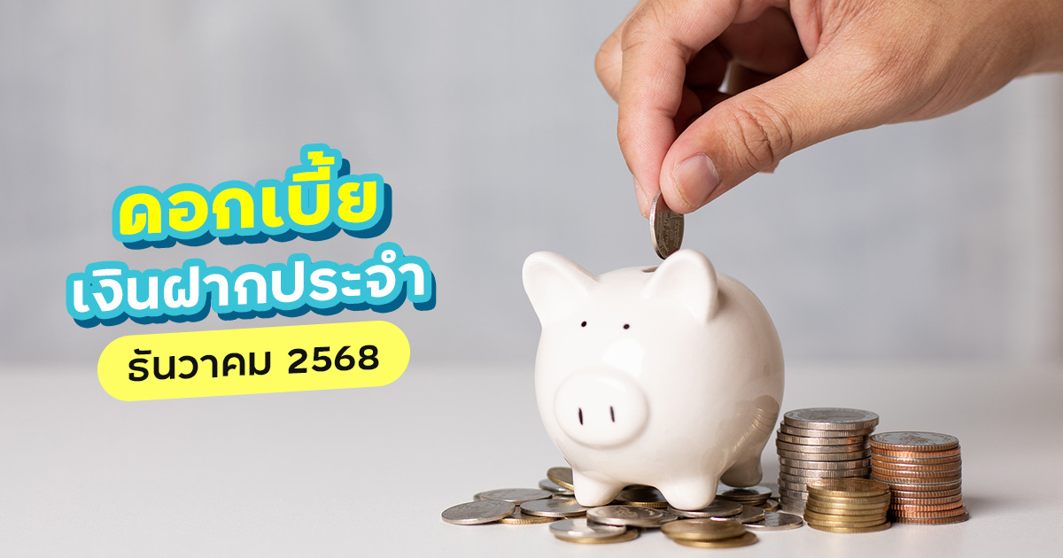 ดอกเบี้ยเงินฝาก เดือนธันวาคม 2568 ที่ไหนให้เท่าไหร่ ใครมีแผนออมเงินกับบัญชีเงินฝากประจำ มาเช็กอัตราดอกเบี้ยเงินฝากของแต่ละธนาคารได้เลย ออมเงิน ด้วยบัญชีเงินฝากประจำเป็นอีกหนึ่งวิธีที่ช่วยให้เราเก็บเงินได้ตามเป้าหมายที่ตั้งใจไว้ แต่จะให้ออมได้คุ้มก็ต้องมองหาบัญชีที่ให้อัตราดอกเบี้ยดี ๆ ด้วย เราเลยรวบรวมข้อมูลดอกเบี้ยเงินฝากประจำ ประจำเดือนธันวาคม 2568 มาให้สายออมได้เช็กก่อนตัดสินใจฝากเงิน (ข้อมูล ณ วันที่ 19 ธันวาคม 2568) อัตราดอกเบี้ยเงินฝากมีผลบังคับใช้ตั้งแต่วันที่ 22 ธันวาคม 2568 เป็นต้นไป ดังนี้ ประจำ 3 เดือน 0.70% ต่อปี ประจำ 6 เดือน 0.75% ต่อปี ประจำ 12 เดือน 0.90% ต่อปี ประจำ 24 เดือน 0.90% ต่อปี ประจำ 36 เดือน 0.90% ต่อปี Krungthai Zero Tax Max 24 เดือน 1.85% ต่อปี Krungthai Zero Tax Max 36 เดือน 2.00% ต่อปี Krungthai Zero Tax Max 48 เดือน 2.00% ต่อปี ข้อมูลเพิ่มเติม : ธนาคารกรุงไทย อัตราดอกเบี้ยเงินฝากมีผลบังคับใช้ตั้งแต่วันที่ 1 ธันวาคม 2568 เป็นต้นไป ดังนี้ ประจำ 1 เดือน 0.40% ต่อปี ประจำ 3 เดือน 0.70% ต่อปี ประจำ 4 เดือน 0.70% ต่อปี ประจำ 5 เดือน 0.70% ต่อปี ประจำ 6 เดือน 0.75% ต่อปี ประจำ 7 เดือน 0.75% ต่อปี ประจำ 8 เดือน 0.75% ต่อปี ประจำ 9 เดือน 0.75% ต่อปี ประจำ 10 เดือน 0.75% ต่อปี ประจำ 11 เดือน 0.75% ต่อปี ประจำ 12 เดือน 0.90% ต่อปี ประจำ 24 เดือน 0.90% ต่อปี ประจำ 36 เดือน 0.90% ต่อปี ประจำดิจิทัล 3 เดือน 0.80% ต่อปี ประจำดิจิทัล 4 เดือน 0.80% ต่อปี ประจำดิจิทัล 5 เดือน 0.80% ต่อปี ประจำดิจิทัล 6 เดือน 0.85% ต่อปี ประจำดิจิทัล 7 เดือน 0.85% ต่อปี ประจำดิจิทัล 8 เดือน 0.85% ต่อปี ประจำดิจิทัล 9 เดือน 0.85% ต่อปี ประจำดิจิทัล 10 เดือน 0.85% ต่อปี ประจำดิจิทัล 11 เดือน 0.85% ต่อปี ประจำดิจิทัล 12 เดือน 1.00% ต่อปี ประจำเพิ่มค่าสบายใจ 24 เดือน 1.50% ต่อปี ประจำเพิ่มค่าสบายใจ 36 เดือน 1.60% ต่อปี ข้อมูลเพิ่มเติม : ธนาคารซีไอเอ็มบี ไทย อัตราดอกเบี้ยเงินฝากมีผลบังคับใช้ตั้งแต่วันที่ 1 ธันวาคม 2568 เป็นต้นไป ดังนี้ ประจำ 3 เดือน 0.80-0.95% ต่อปี ประจำ 4 เดือน 0.80-0.95% ต่อปี ประจำ 6 เดือน 0.95-1.10% ต่อปี ประจำ 9 เดือน 1.10-1.25% ต่อปี ประจำ 12 เดือน 1.05-1.20% ต่อปี ประจำ 18 เดือน 0.95-1.10% ต่อปี ประจำ 24 เดือน 0.95-1.10% ต่อปี ประจำ 36 เดือน 0.95-1.10% ต่อปี ประจำ 48 เดือน 0.95-1.10% ต่อปี ประจำแบบไม่มีสมุดคู่ฝาก 3 เดือน 0.95% ต่อปี ประจำแบบไม่มีสมุดคู่ฝาก 6 เดือน 1.10% ต่อปี ประจำแบบไม่มีสมุดคู่ฝาก 12 เดือน 1.20% ต่อปี ประจำพิเศษ 9 เดือน แบบไม่มีสมุดคู่ฝาก 1.30% ต่อปี ประจำ เคเคพี ฟรี 55 อัพ 12 เดือน 0.75% ต่อปี ประจำ เคเคพี ฟรี 55 อัพ 24 เดือน 0.80% ต่อปี ประจำปลอดภาษี 24 เดือน 1.95% ต่อปี ประจำปลอดภาษี 36 เดือน 2.00% ต่อปี ข้อมูลเพิ่มเติม : ธนาคารเกียรตินาคินภัทร อัตราดอกเบี้ยเงินฝากมีผลบังคับใช้ตั้งแต่วันที่ 19 ธันวาคม 2568 เป็นต้นไป ดังนี้ ประจำ 1 เดือน 0.60% ต่อปี ประจำ 2 เ