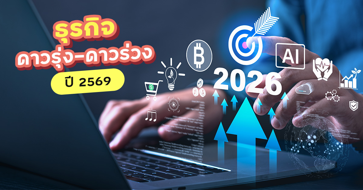 ธุรกิจดาวรุ่ง 2569 มีอะไรบ้าง ? จับตา 28 ธุรกิจ มาแรงแห่งปี พร้อมส่อง 12 ธุรกิจดาวร่วงที่ต้องเตรียมรับมือกับความท้าทายและการเปลี่ยนแปลงที่กำลังเกิดขึ้น เป็นประจำทุกปีที่สถาบันยุทธศาสตร์การค้า มหาวิทยาลัยหอการค้าไทย จะทำการสำรวจและวิจัย เพื่อจัดอันดับธุรกิจดาวรุ่ง และธุรกิจดาวร่วงของปีถัดไป เพื่อเป็นแนวทางให้ผู้ประกอบการสามารถนำไปใช้วางแผนและปรับตัวทางธุรกิจ รวมถึงเป็นข้อมูลให้คนที่กำลังมองหาอาชีพ หรืออยากวางแผนหารายได้เสริม ในปีหน้าใช้ประกอบการตัดสินใจ ทั้งนี้ การประเมินจะพิจารณาจาก 5 ด้านหลัก ได้แก่ ยอดขาย ต้นทุน กำไรสุทธิ ความเสี่ยงและระดับการแข่งขัน รวมถึงความต้องการของตลาดและความสอดคล้องกับกระแสนิยม ก่อนจะสรุปออกมาเป็น 10 อันดับธุรกิจดาวรุ่ง และ 10 อันดับธุรกิจดาวร่วง ปี 2569 ตามข้อมูลด้านล่างนี้ ธุรกิจ Cloud Service และบริการ Cyber Security : สอดรับกับการขยายตัวของเศรษฐกิจดิจิทัลทั่วโลก ส่งผลให้การทำธุรกรรมผ่านอินเทอร์เน็ตเพิ่มมากขึ้น จึงเป็นโอกาสให้ธุรกิจ Cloud Service เติบโตควบคู่ไปด้วย ขณะเดียวกัน ภัยคุกคามทางไซเบอร์ก็มีแนวโน้มเพิ่มขึ้น ทำให้หน่วยงานและองค์กรต่าง ๆ หันมาใช้บริการด้าน Cyber Security มากขึ้นเช่นกัน ธุรกิจ Social Media และ Online Entertainment : ยังคงเติบโตต่อเนื่อง จากพฤติกรรมผู้บริโภคที่ใช้เวลาอยู่บนแพลตฟอร์มออนไลน์มากขึ้น การขายสินค้าผ่านไลฟ์สด รวมถึงการรีวิวสินค้าออนไลน์ได้รับความนิยมสูง จนกลายเป็นแหล่งรายได้สำคัญที่เชื่อมโยงคอนเทนต์เข้ากับการขายสินค้าได้โดยตรง ธุรกิจจัดทำคอนเทนต์ YouTuber การรีวิวสินค้า และ Influencer : แพลตฟอร์มต่าง ๆ ให้ความสำคัญกับวิดีโอสั้นมากขึ้น ทำให้ Content Creator สามารถเข้าถึงผู้ชมใหม่ ๆ ได้รวดเร็วและเป็นที่รู้จักง่ายขึ้น ธุรกิจโทรคมนาคมสื่อสาร : เช่น ผู้ให้บริการอินเทอร์เน็ตหรือโครงข่ายสื่อสารต่าง ๆ มีแนวโน้มเติบโตต่อเนื่องจากการขยายตัวของบริการดิจิทัลและดิจิทัลคอนเทนต์ รวมถึงการพัฒนาเทคโนโลยี 5G ขณะเดียวกัน ธุรกิจที่นำเทคโนโลยี AI และระบบ Automation มาใช้ก็ได้รับความนิยมมากขึ้น ธุรกิจนายหน้าออนไลน์ ขายสินค้าออนไลน์ : ได้รับแรงหนุนจากการเติบโตของแพลตฟอร์ม Social Commerce อย่างต่อเนื่อง อีกทั้งเป็นธุรกิจที่ใช้เงินลงทุนไม่สูง ไม่จำเป็นต้องสต็อกสินค้า มีสินค้าให้เลือกหลากหลาย และสามารถปรับเปลี่ยนประเภทสินค้าที่จำหน่ายได้ตามกระแสตลาด ธุรกิจ E-Commerce : ยังคงเติบโตจากพฤติกรรมผู้บริโภคที่เปลี่ยนไป หันมาซื้อ-ขายสินค้าผ่านแพลตฟอร์มออนไลน์มากขึ้น เนื่องจากมีสินค้าให้เลือกหลากหลาย สามารถเปรียบเทียบราคาได้ง่าย และ