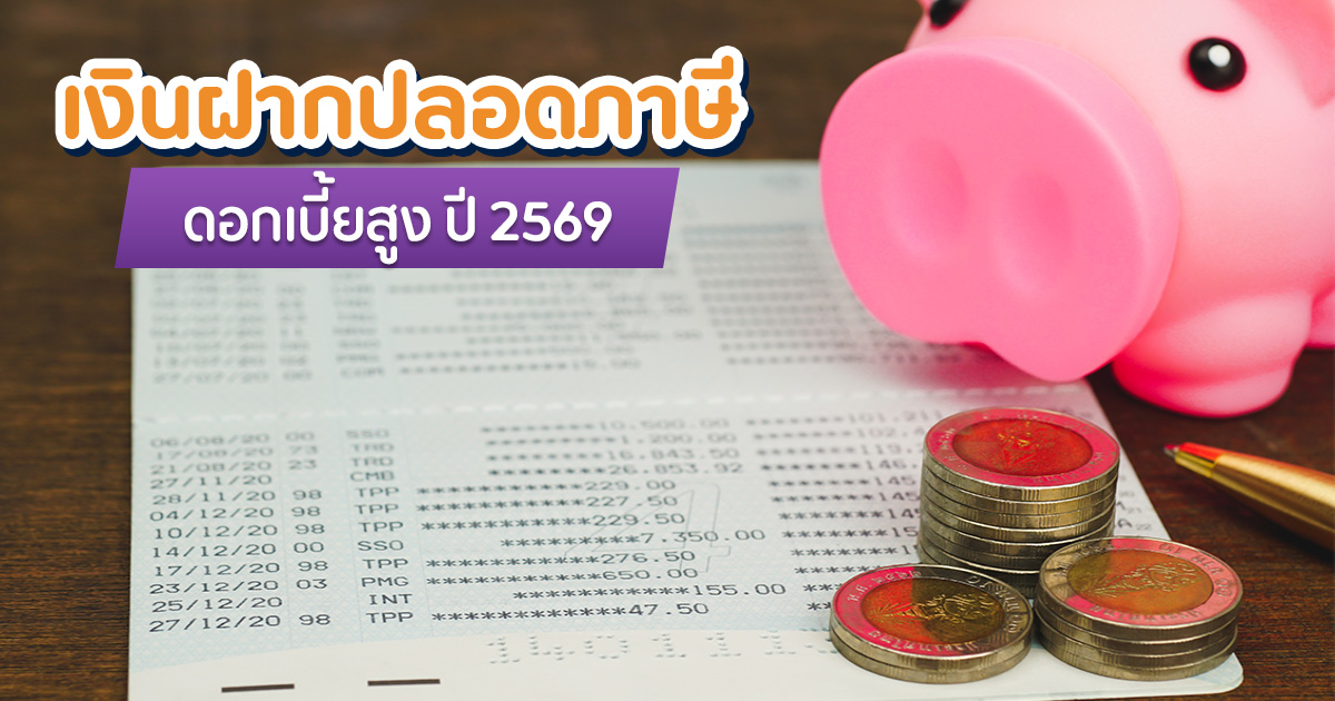 เงินฝากปลอดภาษี ดอกเบี้ยสูง 2569 สำหรับคนอยากออมยาว ทั้งแบบประจำ 24 เดือน และ 36 เดือน แบงก์ไหนให้ผลตอบแทนดี วันนี้รวมมาให้แล้วกับ 7 อันดับน่าสนใจ เงินฝากปลอดภาษี เป็นตัวเลือกยอดฮิตของสายออมเงิน เพราะเป็นบัญชีเงินฝากประจำระยะยาวที่ไม่ต้องเสียภาษีดอกเบี้ย ตอบโจทย์คนที่ตั้งใจเก็บเงินแบบค่อยเป็นค่อยไปด้วยการฝากทุกเดือนอย่างสม่ำเสมอ ช่วยสร้างวินัยทางการเงินไปในตัว แถมยังได้ดอกเบี้ยแบบเต็ม ๆ ไม่ถูกหักภาษี แต่ก่อนจะตัดสินใจเปิดบัญชีเงินฝากประจำปลอดภาษี เราอยากชวนทุกคนมาเช็กเงื่อนไขสำคัญที่ควรรู้ พร้อมพาไปดูว่า เงินฝากปลอดภาษี ดอกเบี้ยสูง ปี 2569 มีแบงก์ไหนน่าสนใจบ้าง จะได้เลือกออมเงินได้คุ้มและตรงกับเป้าหมายมากที่สุด เงินฝากประจำปลอดภาษีมีเงื่อนไขบางอย่างที่แตกต่างจากเงินฝากประจำทั่วไป ใครกำลังสนใจ ลองเช็กให้ครบก่อนเปิดบัญชีตามนี้เลย เปิดได้เพียง 1 บัญชีต่อคน รวมทุกธนาคาร หมายความว่า หากเปิดเงินฝากปลอดภาษีกับธนาคารใดแล้ว จะไม่สามารถเปิดกับธนาคารอื่นได้อีก จนกว่าจะฝากครบกำหนด จากนั้นจึงสามารถเปิดบัญชีใหม่กับธนาคารเดิมหรือธนาคารอื่นได้ เลือกระยะเวลาฝากได้ตั้งแต่ 24 เดือน, 36 เดือน, 48 เดือน หรือ 60 เดือน (ขึ้นอยู่กับผลิตภัณฑ์ของแต่ละธนาคาร) ต้องฝากเงินเท่ากันทุกเดือน ตั้งแต่เดือนแรกจนถึงเดือนสุดท้าย เช่น เปิดบัญชีเงินฝากปลอดภาษี 24 เดือน เดือนละ 1,000 บาท ก็ต้องฝาก 1,000 บาททุกเดือน รวมทั้งหมด 24 ครั้ง จึงจะได้รับดอกเบี้ยและสามารถปิดบัญชีได้ สามารถฝากเงินวันใดของเดือนก็ได้ ไม่จำเป็นต้องเป็นวันที่เดียวกันในแต่ละเดือน เพียงแต่ต้องฝากให้ครบจำนวนเงินและภายในรอบเดือนตามที่ธนาคารกำหนด ยอดฝากขั้นต่ำอยู่ที่ 500-1,000 บาทต่อเดือน (ขึ้นอยู่กับธนาคาร) และยอดเงินฝากรวมเมื่อครบกำหนดต้องไม่เกิน 600,000 บาท ดังนั้น ระยะเวลาฝาก 24 เดือน ฝากได้สูงสุดไม่เกิน 25,000 บาท/เดือน ระยะเวลาฝาก 36 เดือน ฝากได้สูงสุดไม่เกิน 16,500 บาท/เดือน ระยะเวลาฝาก 48 เดือน ฝากได้สูงสุดไม่เกิน 12,500 บาท/เดือน บางธนาคารอาจอนุญาตให้ฝากเงินรวมเกิน 600,000 บาทได้ แต่ดอกเบี้ยในส่วนที่เกินจะไม่ได้รับการยกเว้นภาษี และต้องถูกหักภาษี 15% ขาดฝากได้ไม่เกิน 2 ครั้ง จะเป็นติดกันหรือไม่ติดกันก็ได้ แต่หากฝากต่อจนครบกำหนด ยังคงได้รับดอกเบี้ยตามเงื่อนไขเงินฝากปลอดภาษี และไม่ต้องเสียภาษี หากขาดฝากเกิน 2 ครั้ง ธนาคารอาจให้ปิดบัญชี หรือเปลี่ยนเป็นเงินฝากประเภทอื่นแทน ซึ่งอาจไม่ได้รับดอกเบี้ยในอัตราเงินฝากปลอดภาษี หรืออาจต้องถูกหักภาษีดอกเบี้ยเงินฝาก ตามเงื่อนไขของแต่ละธนาค