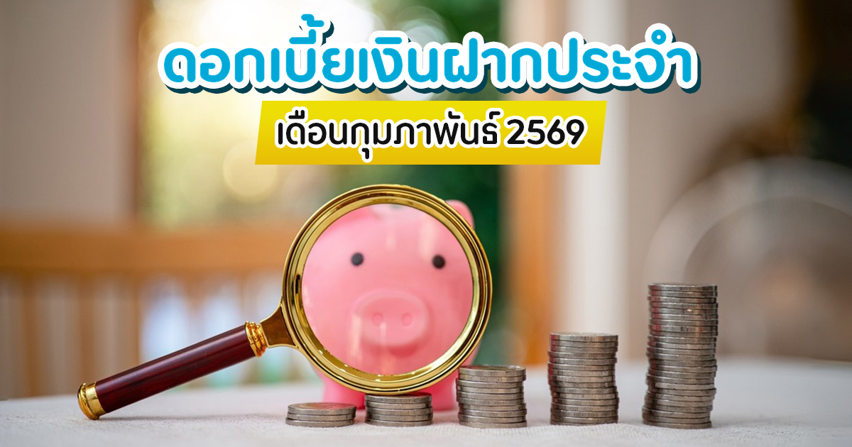 ดอกเบี้ยเงินฝากประจำ 2569 ทุกธนาคาร แบงก์ไหนปรับลดดอกเบี้ยบ้างในเดือนกุมภาพันธ์ มาเช็กกันก่อนไปฝากเงิน ใครกำลังมองหาวิธีออมเงิน ให้ได้ดอกเบี้ยสูง แต่ไม่แน่ใจว่าจะเลือกฝากประจำธนาคารไหนดี มาทางนี้เลย ! เพราะเราได้รวบรวมอัตราดอกเบี้ยเงินฝากประจำ 2569 ทุกธนาคาร ในเดือนกุมภาพันธ์ มาบอกแล้ว พร้อมทั้งเปรียบเทียบอัตราดอกเบี้ยเงินฝากประจำ 3 เดือน, 6 เดือน และ 12 เดือน แบบชัด ๆ เพื่อให้ทุกคนได้ตัดสินใจเลือกออมเงินแบบคุ้มที่สุด (ข้อมูล ณ วันที่ 11 กุมภาพันธ์ 2569) เงินฝากประจำ 3 เดือน ธนาคารทิสโก้ : อัตราดอกเบี้ย 1.00-1.10% ต่อปี ขึ้นอยู่กับวงเงินฝาก เงินฝากประจำ 3 เดือน ธ.ก.ส. : อัตราดอกเบี้ย 0.95% ต่อปี เงินฝากประจำ Online Deposit 3 เดือน ธนาคารไอซีบีซี (ไทย) : อัตราดอกเบี้ย 0.85% ต่อปี เงินฝากประจำ 6 เดือน ธนาคารไทยเครดิต : อัตราดอกเบี้ย 1.45% ต่อปี เงินฝากประจำ TISCO e-Fixed 6 เดือน (ไม่มีสมุดบัญชี) : อัตราดอกเบี้ย 1.30% ต่อปี เงินฝากประจำ 6 เดือน ธ.ก.ส. : อัตราดอกเบี้ย 1.00% ต่อปี เงินฝากประจำทันใจ 12 เดือน ธนาคารไทยเครดิต : อัตราดอกเบี้ย 1.70% ต่อปี เงินฝากประจำ 12 เดือน ธ.ก.ส. : อัตราดอกเบี้ย 1.60% ต่อปี เงินฝากประจำ 12 เดือน ธนาคารไทยเครดิต : อัตราดอกเบี้ย 1.45% ต่อปี คราวนี้มาดูกันว่า อัตราดอกเบี้ยเงินฝากประจำของแต่ละธนาคารในเดือนกุมภาพันธ์ 2569 เป็นอย่างไร แต่ละแบงก์มีเงินฝากแบบไหนให้เลือก และที่ไหนให้ดอกเบี้ยน่าสนใจที่สุด อัตราดอกเบี้ยเงินฝากมีผลบังคับใช้ตั้งแต่วันที่ 4 กุมภาพันธ์ 2569 เป็นต้นไป ดังนี้ ประจำ 3 เดือน 0.65% ต่อปี ประจำ 6 เดือน 0.80% ต่อปี ประจำ 12 เดือน 0.90% ต่อปี ประจำ 24 เดือน 0.90% ต่อปี ประจำ 36 เดือน 0.90% ต่อปี ประจำปลอดภาษี 24 เดือน 1.70% ต่อปี ประจำปลอดภาษี 36 เดือน 1.40% ต่อปี ประจำปลอดภาษี Happy Tax Free 24 เดือน .80% ต่อปี (Kept by Krungsri) ประจำปลอดภาษี Happy Tax Free 36 เดือน 1.50% ต่อปี (Kept by Krungsri) ข้อมูลเพิ่มเติม : ธนาคารกรุงศรีอยุธยา อัตราดอกเบี้ยเงินฝากที่ใช้ตั้งแต่วันที่ 2 กุมภาพันธ์ 2569 เป็นต้นไป ดังนี้ ประจำ 3 เดือน 0.70% ต่อปี ประจำ 6 เดือน 0.75% ต่อปี ประจำ 12 เดือน 0.95% ต่อปี ประจำ 24 เดือน 1.00% ต่อปี ประจำ 36 เดือน 1.10% ต่อปี ประจำ 60 เดือน 1.10% ต่อปี ประจำสะสมทรัพย์ 0.95% ต่อปี ข้อมูลเพิ่มเติม : ธนาคารอาคารสงเคราะห์ อัตราดอกเบี้ยเงินฝากมีผลบังคับใช้ตั้งแต่วันที่ 1 กุมภาพันธ์ 2569 เป็นต้นไป ดังนี้ ประจำ 3 เดือน 0.50-0.65% ต่อปี ประจำ 4 เดือน 0.50-0.65% ต่อปี ประจำ 6 เดือน 0.65-0.80% ต่อปี ประจำ 9 เดือน 0.85-1.00% ต่อปี ประจำ 12 เดือน 0.85-1.00% ต่อปี ประจำ 18 เดือน 0.75-0.90% ต่อปี ประจำ 24 เดือน 0.75-0.90% ต่อปี ประจำ 36 เดือน 0.75-0.90% ต่อปี ประจำ 48 เดือน 0.75-0.90% ต่อปี ประจำแบบไม่มีสมุดคู่ฝาก 3 เดือน 0.65% ต่อปี ประจำแบบไม่มีสมุดคู่ฝาก 6 เดือน 0.80% ต่อปี ประจำแบบไม่มีสมุด