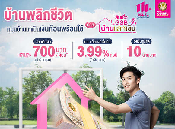 การเงินสะดุด ไม่ต้องกังวลใจ หมุนบ้านเป็นเงินก้อนพร้อมใช้ ด้วยสินเชื่อ GSB บ้านแลกเงิน