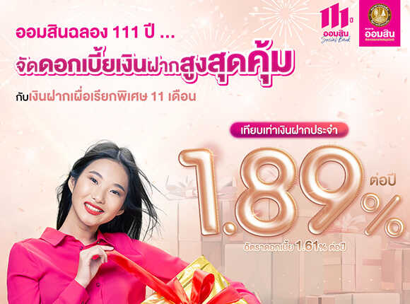 ฉลองออมสินครบ 111 ปี กับเงินฝากเผื่อเรียกพิเศษ 11 เดือน ดอกเบี้ยรับเต็ม ไม่เสียภาษี