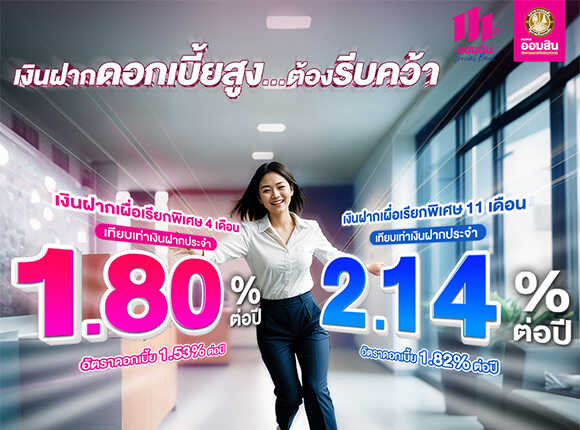 ดอกเบี้ยสูง…ต้องรีบคว้า กับเงินฝากเผื่อเรียกพิเศษ 4 เดือน และ 11 เดือน