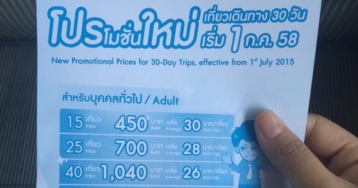 บีทีเอส ออกราคาโปรโมชั่นใหม่ สำหรับบัตรโดยสารรถไฟฟ้าแบบเที่ยว เฉลี่ยเที่ยวละ 30 บาท แพงขึ้นกว่าเดิมที่ราคาเที่ยวละ 27 บาท