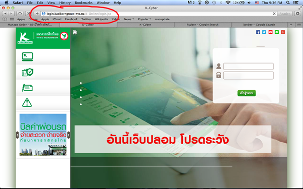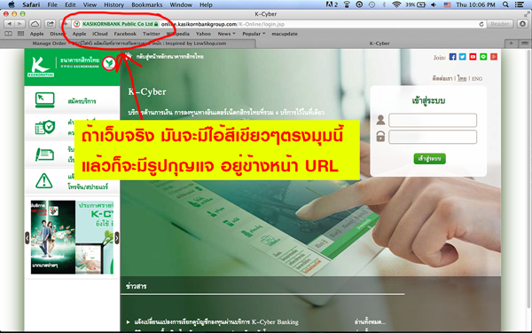 หลังจากกดเข้าไปแล้วก็จะมีหน้าตาเว็บไซต์เหมือนกับเว็บไซต์ของธนาคารกสิกรทุกอย่าง แต่หากสังเกตดี ๆ จะพบว่าเว็บไซต์จริงของธนาคารกสิกรไทย บริเวณช่อง URL จะมีรูปแม่กุญแจพร้อมกับแถบสีเขียว จึงขอเตือนทุกคนให้ระวังมิจฉาชีพกลุ่มนี้รวมทั้งตนเองได้แจ้งเรื่องดังกล่าวไปยัง ศูนย์ K Contact center 02-888-8888 แล้ว