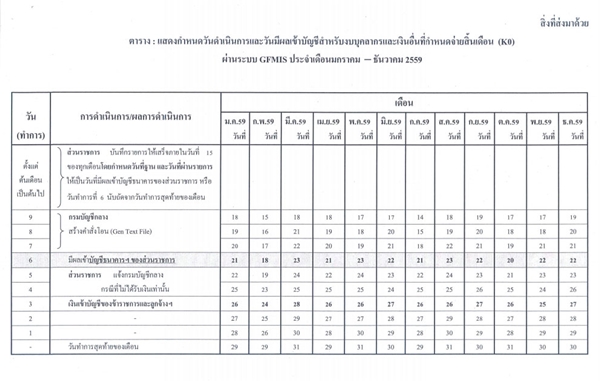 เงินเดือนเข้าบัญชีข้าราชการและลูกจ้าง เดือน ตุลาคม 2559 : 27 ตุลาคม 2559