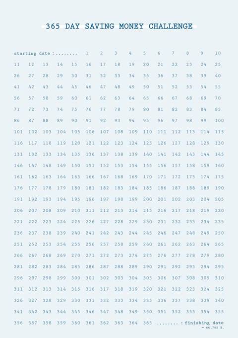 ทั้งนี้ ผู้ออมจะต้องพรินท์ปฏิทินเก็บเงินตามตัวอย่างนี้ แล้วเริ่มทยอยเก็บเงินนับตั้งแต่วันแรก เช่น ในวันที่ 1 ของปี ก็เก็บเงิน 1 บาท วันที่ 2 ของปี ก็เก็บเงิน 2 บาท โดยค่อย ๆ ทยอยเพิ่มเงินเก็บไปเรื่อย ๆ ทบจากของเดิมวันละ 1 บาท แล้วภายใน 365 วัน คุณก็จะมีเงินเก็บทั้งสิ้นกว่า 66,795 บาทเลยทีเดียว
