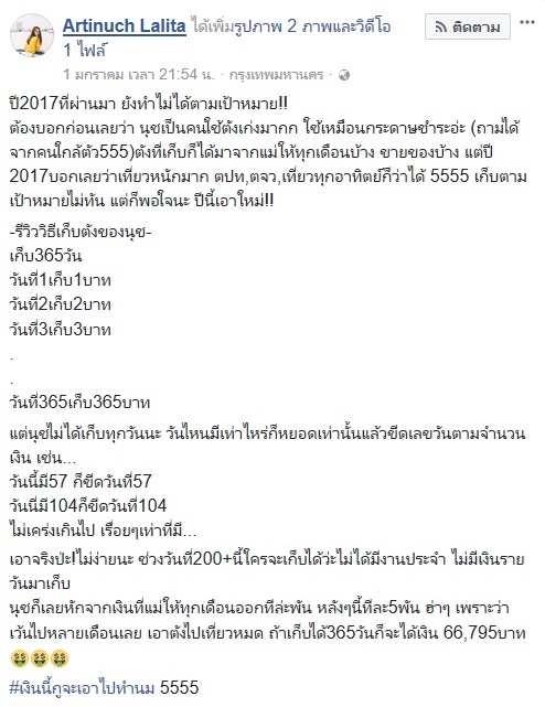 ล่าสุด (1 มกราคม 2561) โลกโซเชียลก็ได้มีการแชร์ไอเดียเก็บเงินดี ๆ