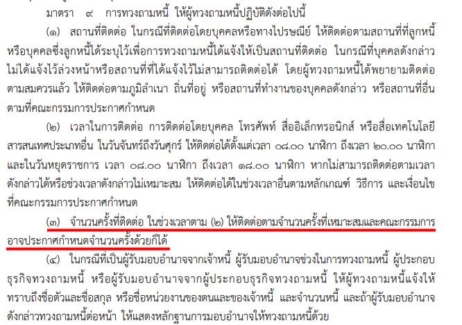 มาตรา 9 (3) และมาตรา 16 (1) ของ พ.ร.บ.การทวงถามหนี้ พ.ศ. 2558 ภาพจาก เว็บไซต์ราชกิจจานุเบกษา