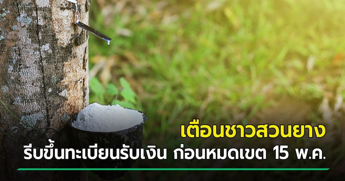 เตือนชาวสวนยาง รีบขึ้นทะเบียนเกษตรกร ภายในวันที่ 15 พ.ค. 63 เตรียมพร้อมรอรับเงินเยียวยา COVID 19 กลุ่มที่ 2 จำนวน 15,000 บาท ณ การยางแห่งประเทศไทย ใกล้บ้านท่าน