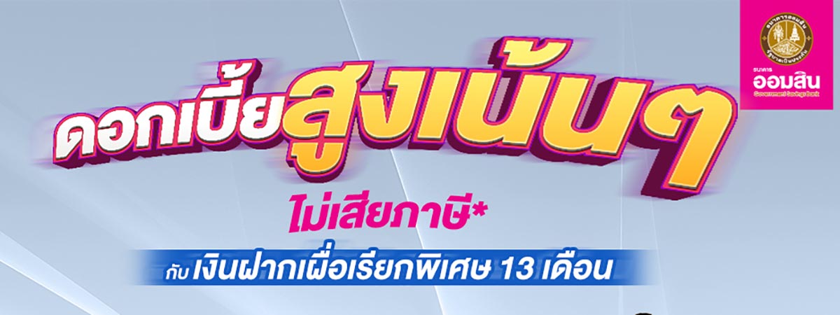 ดอกเบี้ยสูง ไม่เกรงใจใคร รับเต็มไม่เสียภาษี* กับเงินฝากเผื่อเรียกพิเศษ 13 เดือน... รับอัตราดอกเบี้ย 1.75% ต่อปี (เทียบเท่าเงินฝากประจำ 2.05% ต่อปี)