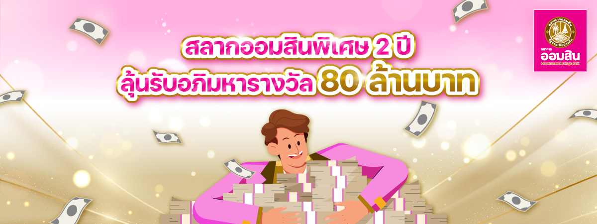 - ต่อที่ 2 : ร่วมลุ้นรางวัลพิเศษ มูลค่า 50 ล้านบาท อีกจำนวน 1 รางวัล (จับรางวัลในงวดวันที่ 1 ธันวาคม 2566) ซึ่งรวมแล้วจะได้ลุ้นรางวัลสูงสุดถึง 80 ล้านบาทเลยทีเดียว โดยจะประกาศรายชื่อผู้โชคดีผ่านทางเว็บไซต์ www.gsb.or.th และเจ้าหน้าที่จะส่งจดหมายลงทะเบียนตอบรับแจ้งให้ไปรับรางวัลด้วยตัวเอง ณ ธนาคารออมสิน สำนักงานใหญ่