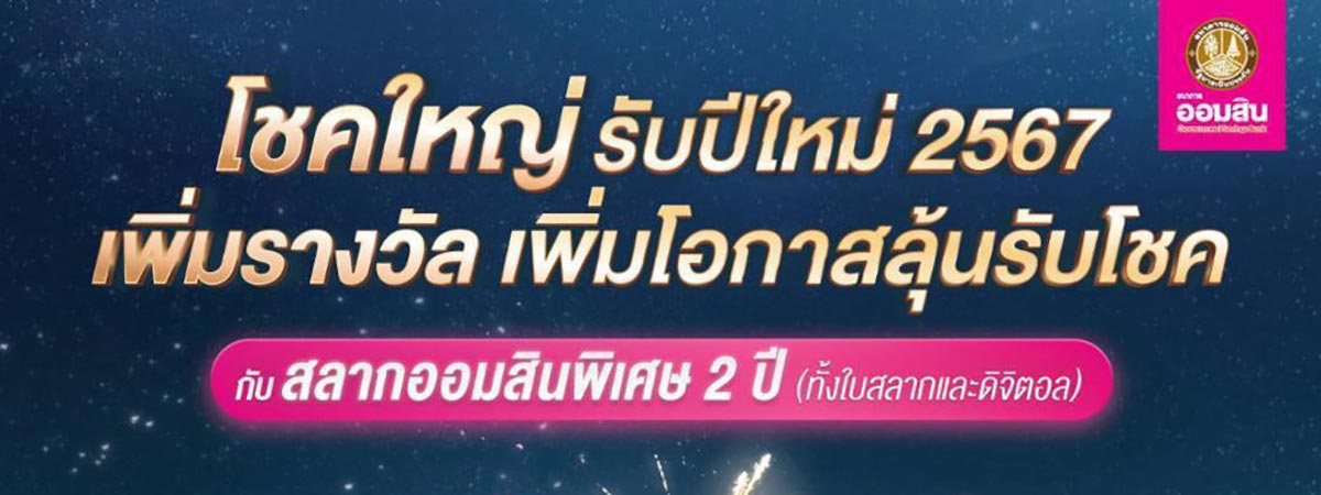 แจกหนักข้ามปี มาฉลองวันคริสต์มาสและต้อนรับปีใหม่ กับสลากออมสิน 2 ปี ลุ้นรับรางวัลมูลค่ารวม 111 ล้านบาท !!...ฝากเลยที่ MyMo และธนาคารออมสินทุกสาขา