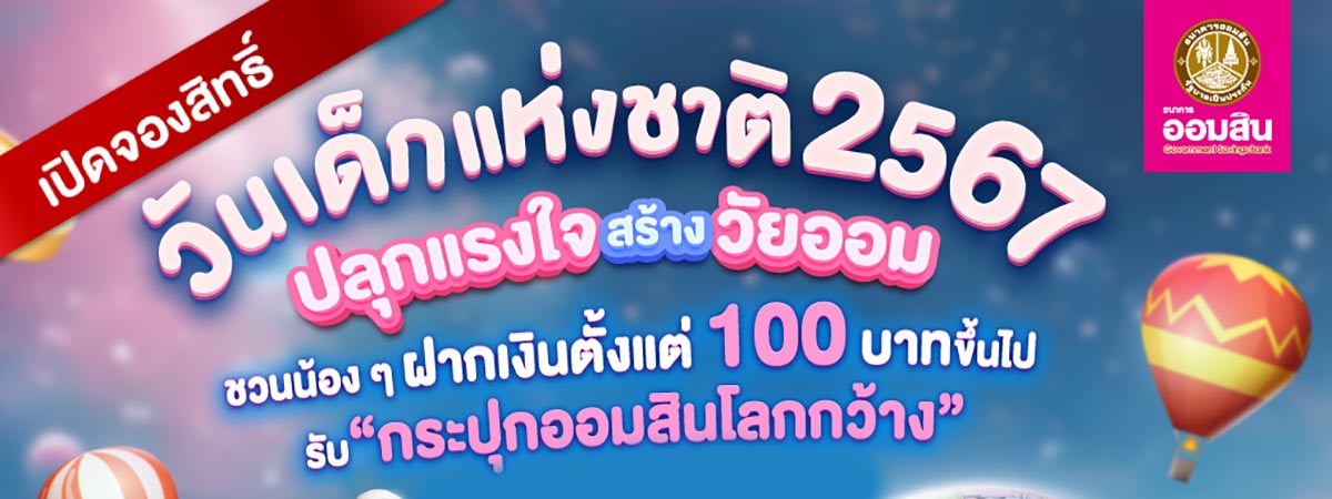 ปลุกพลังการออมให้เด็กยุคใหม่ !! ออมสินต้อนรับวันเด็กแห่งชาติ 2567 เปิดให้ลงทะเบียนฝากเงินรับ "กระปุกออมสินโลกกว้าง" สุดน่ารัก