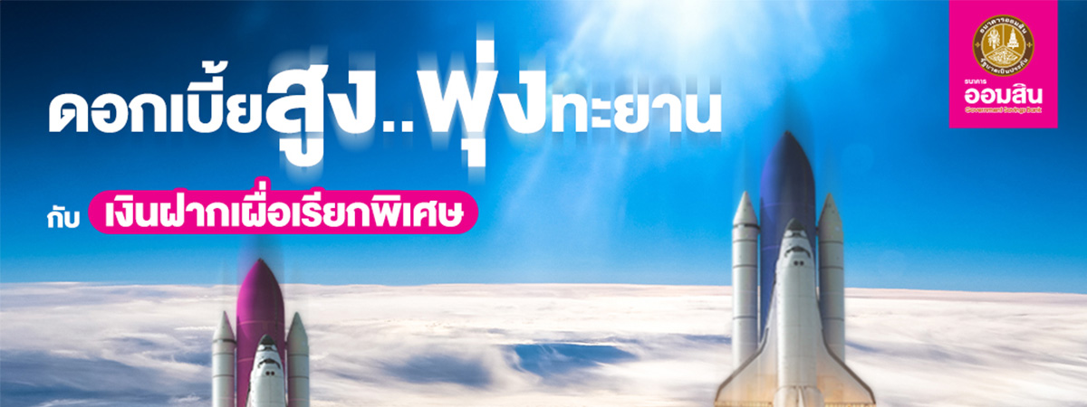 เงินฝากดอกเบี้ยสูง พุ่งทะยาน รับดอกเบี้ยเต็มไม่เสียภาษี…กับเงินฝากเผื่อเรียกพิเศษที่ฝากแบบไหนก็ปัง ฝากเลยวันนี้ที่ธนาคารออมสินทุกสาขา