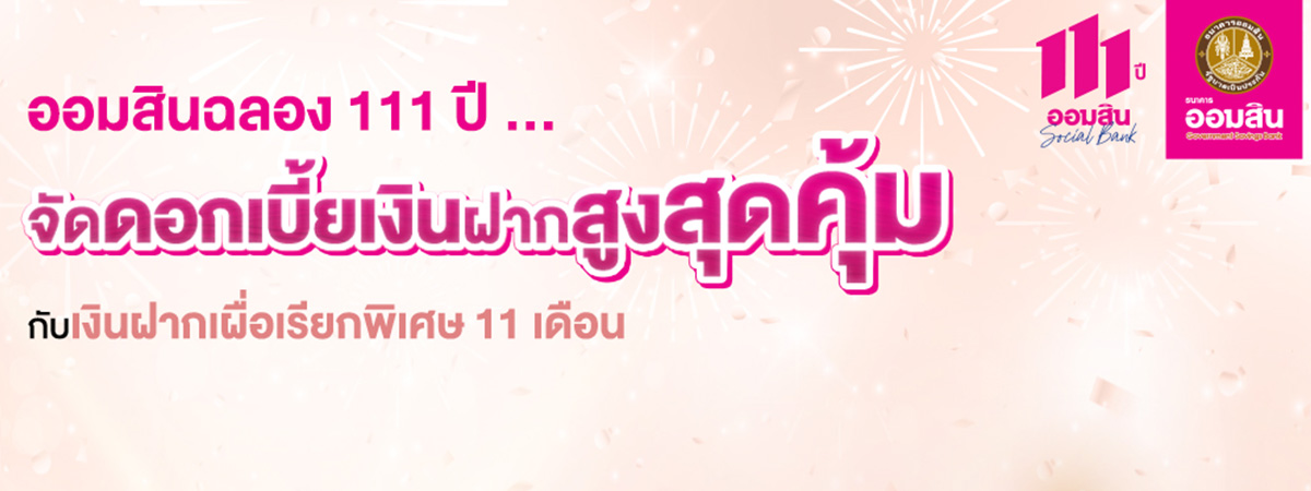 เอาใจสายออมจัดดอกเบี้ยสูงมาให้ใจฟู !! ฉลองออมสินครบ 111 ปี กับเงินฝากเผื่อเรียกพิเศษ 11 เดือน ดอกเบี้ยรับเต็มไม่เสียภาษี ฝากเลยที่ธนาคารออมสินทุกสาขา